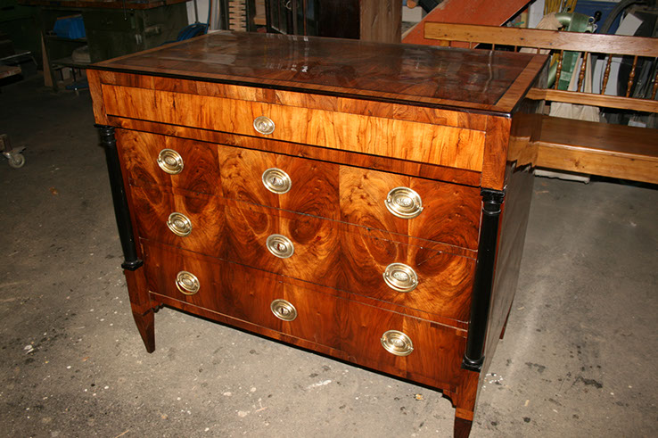In unserem Ausstellungsraum- und Lagerraum finden Sie restaurierte sowie unrestaurierte Möbel, aus den verschiedensten Epochen. Diese Möbel werden von uns aufwendig restauriert und ihren Oberflächen entsprechend mit Schellackpolituren oder Schellackmattierungen veredelt.
