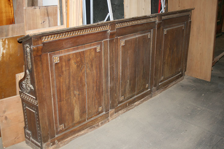 Kirchenbank Nussbaum massiv, ca. 1780, unrestauriert, Preis auf Anfrage