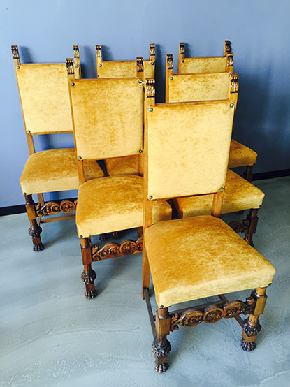 Barockstühle aus Nussbaum, Bezug neu, 6 Stück für 3.200 Euro