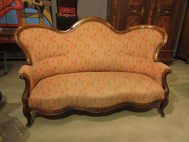 Nussbaumsofa, ca. 1860 "Loriot", Polsterung neuwertig, Bezug abänderbar