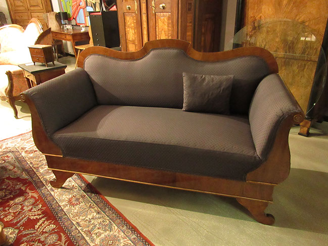 Nussbaum Biedermeier Sofa, ca. 1830, Polsterung u. Bezug neu, Preis auf Anfrage