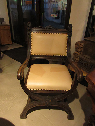 Lederbezogener Scherenstuhl, ca. 1900, Preis auf Anfrage