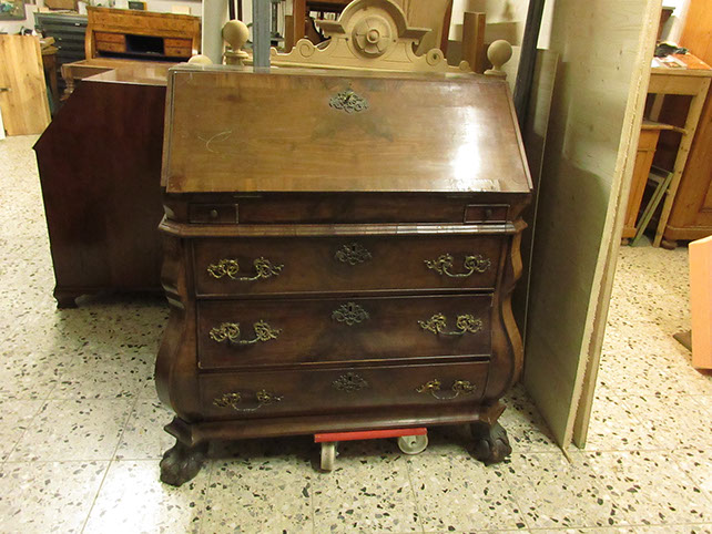 In unserem Ausstellungsraum- und Lagerraum finden Sie restaurierte sowie unrestaurierte Möbel, aus den verschiedensten Epochen. Diese Möbel werden von uns aufwendig restauriert und ihren Oberflächen entsprechend mit Schellackpolituren oder Schellackmattierungen veredelt.